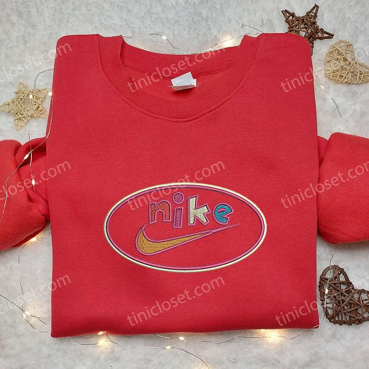 Colorful Nike Embroidered Sweatshirt, Nike Inspired Embroidered Shirt, Best Birthday Gift Ideas