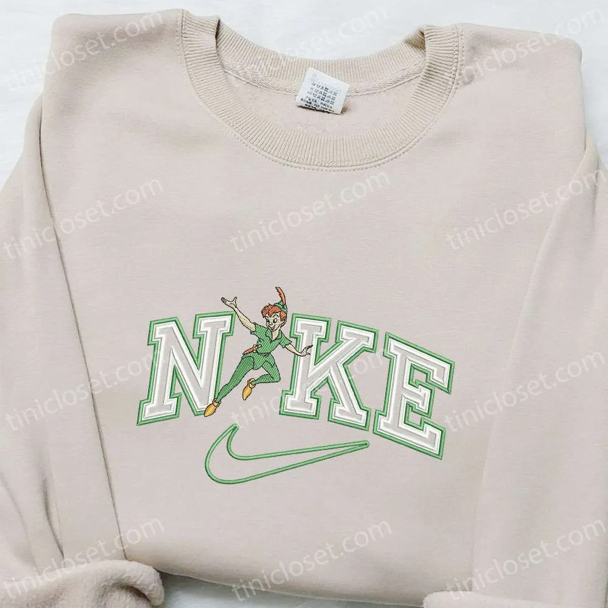 Nike x Peter Pan Embroidered Shirt, Disney Characters Embroidered Shirt, Nike Inspired Embroidered T-shirt