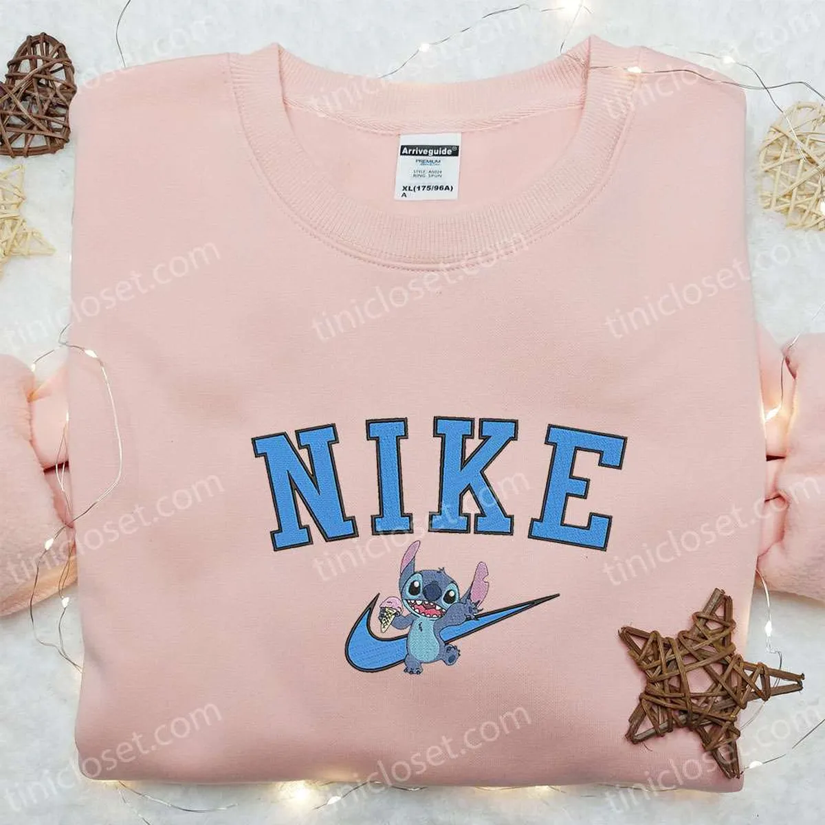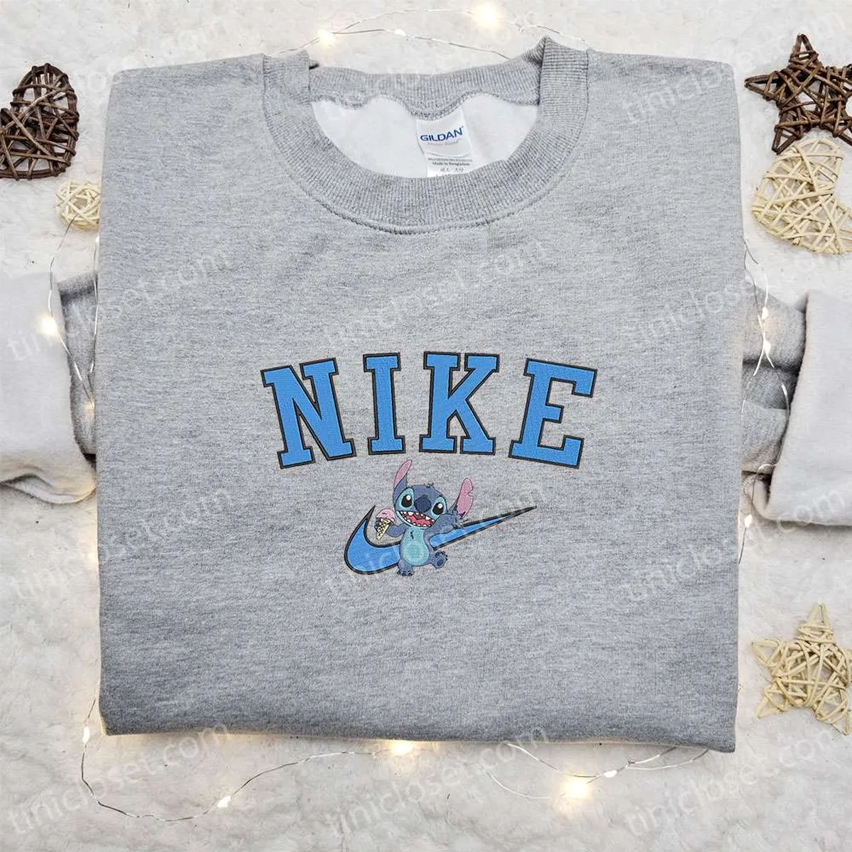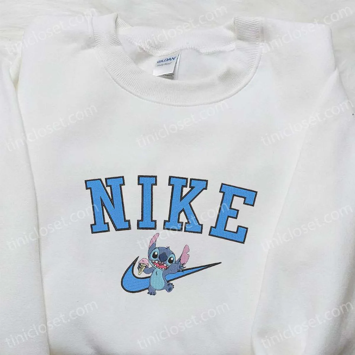 Nike x Stitch Ice Cream Cartoon Embroidered Sweatshirt, Disney Characters Embroidered Hoodie, Best Birthday Gift Ideas
