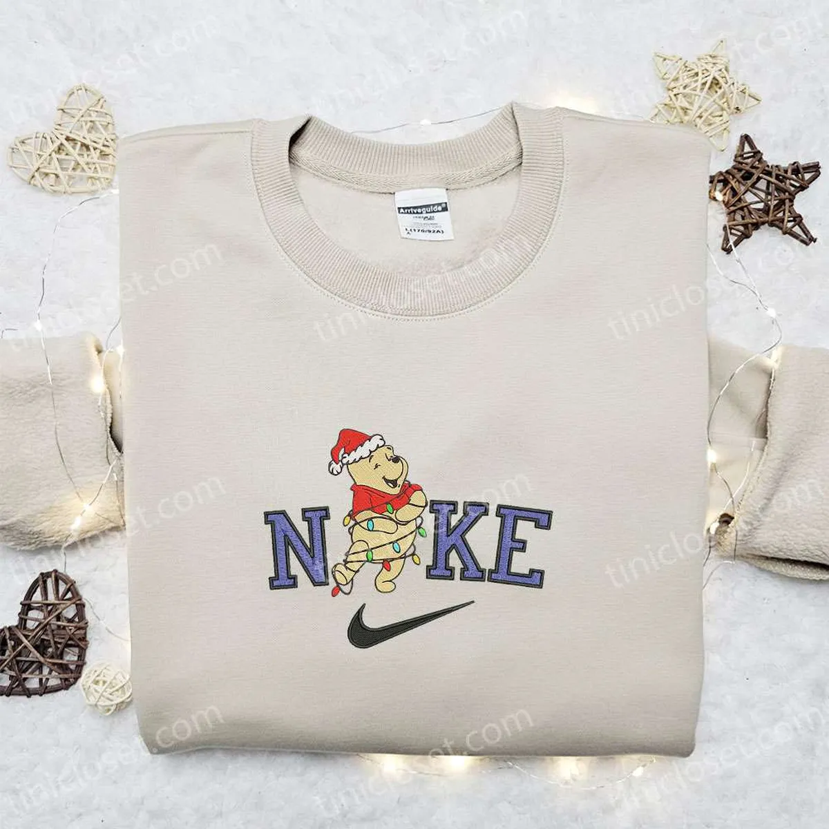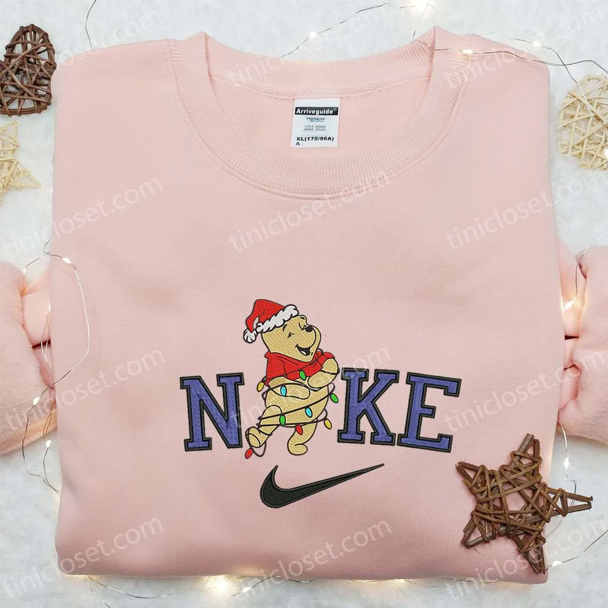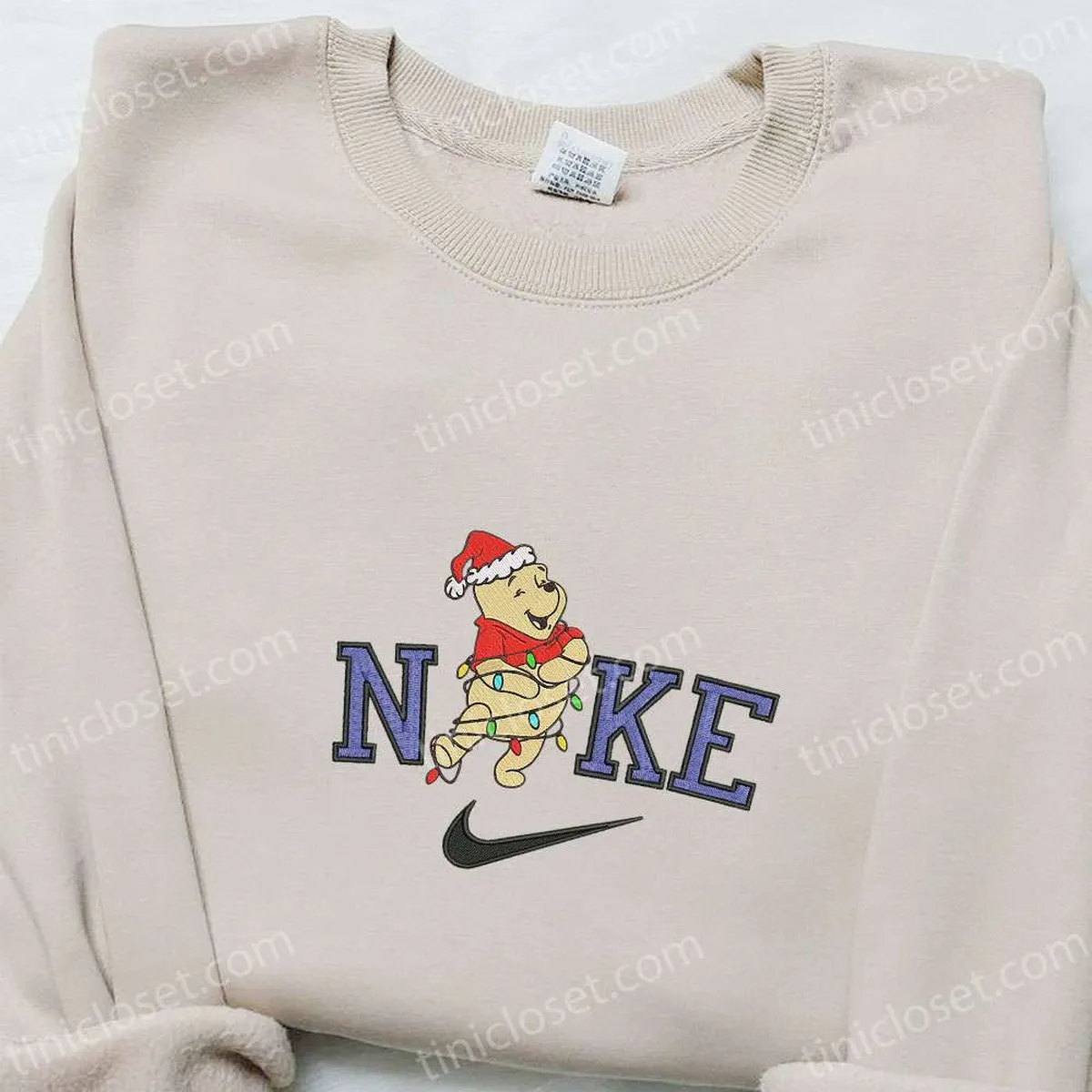 Nike x Winnie the Pooh Christmas Light Embroidered Shirt, Disney Embroidered Hoodie, Family Christmas Sweatshirts