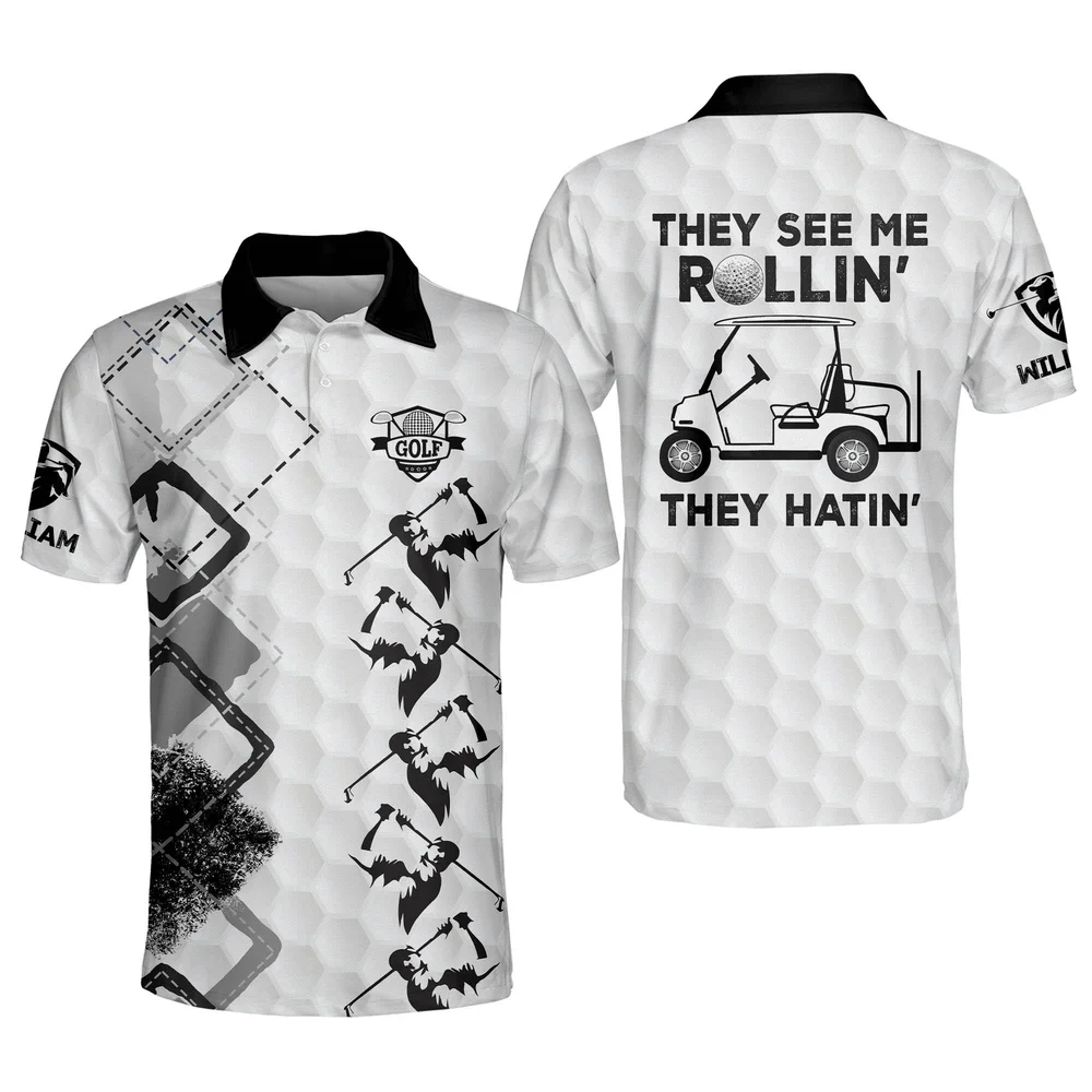 Personalized Funny Golf Shirts for Men They See Me Rollin They Hatin Mens Golf Shirt Short Sleeve GOLF