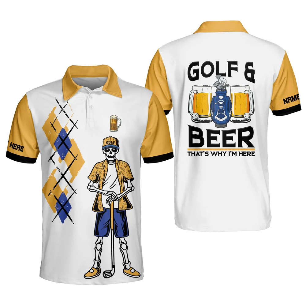 Personalized Funny Skull Golf Shirt for Men Skull Golf and Beer Lightweight Short Sleeve Polo Shirts for Men GOLF