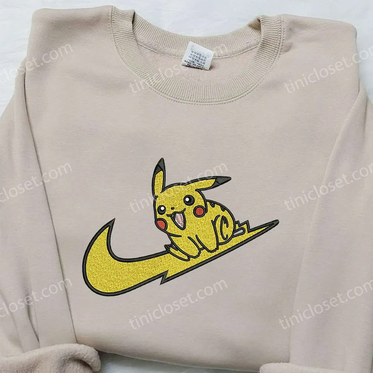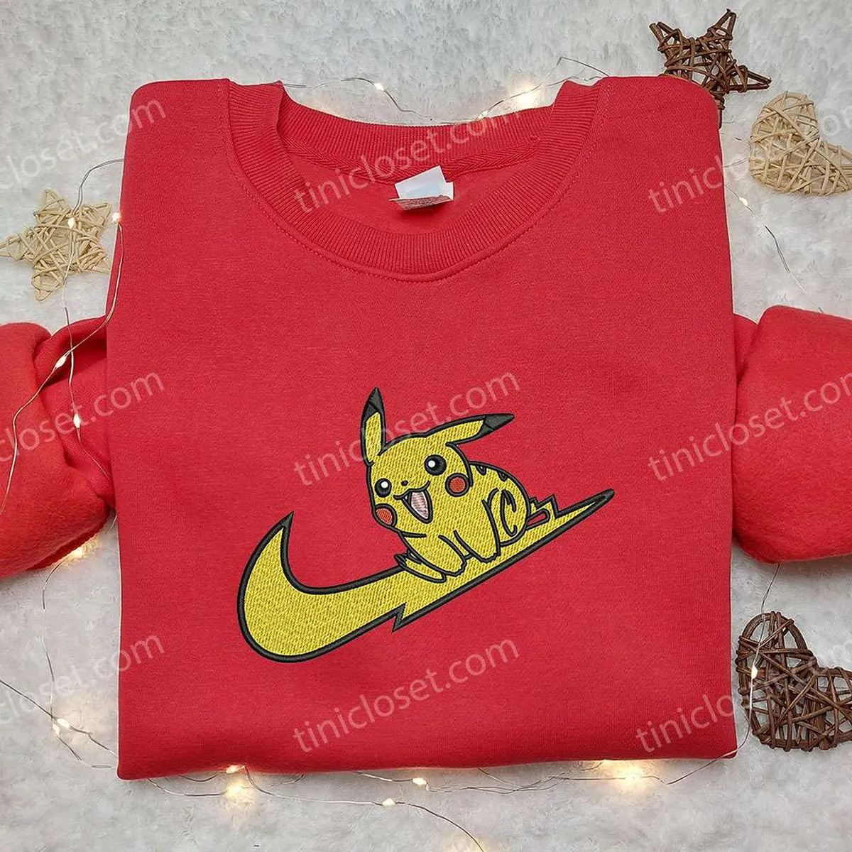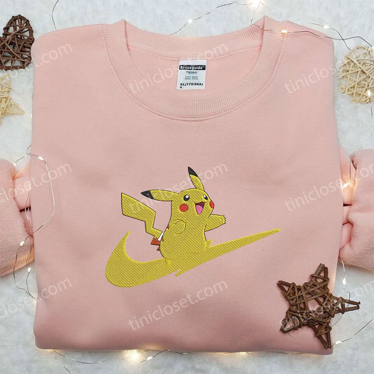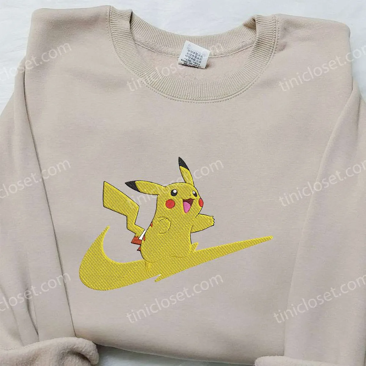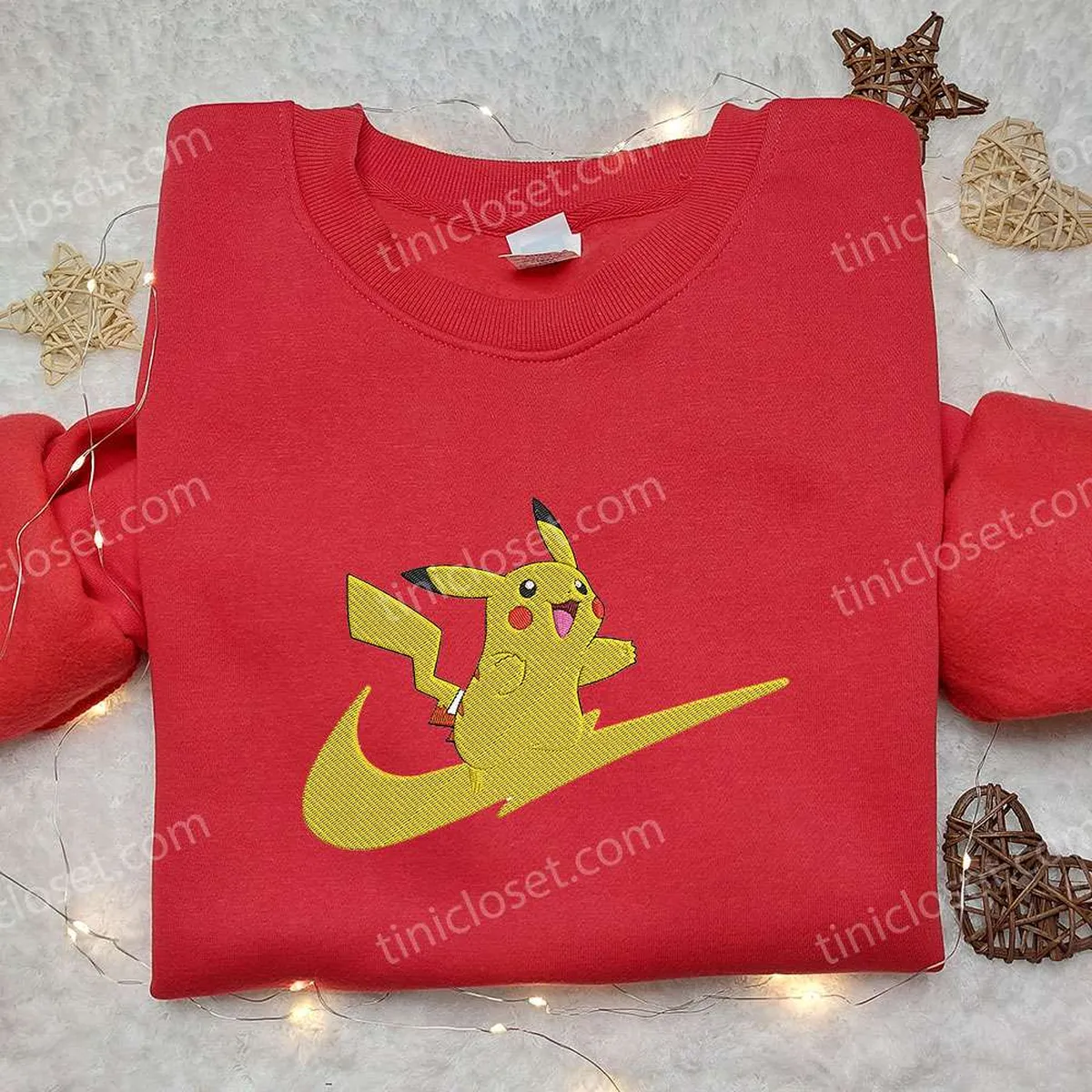 Pikachu x Nike Swoosh Embroidered Sweatshirt, Pokemon Embroidered Sweatshirt, Nike Inspired Embroidered Shirt