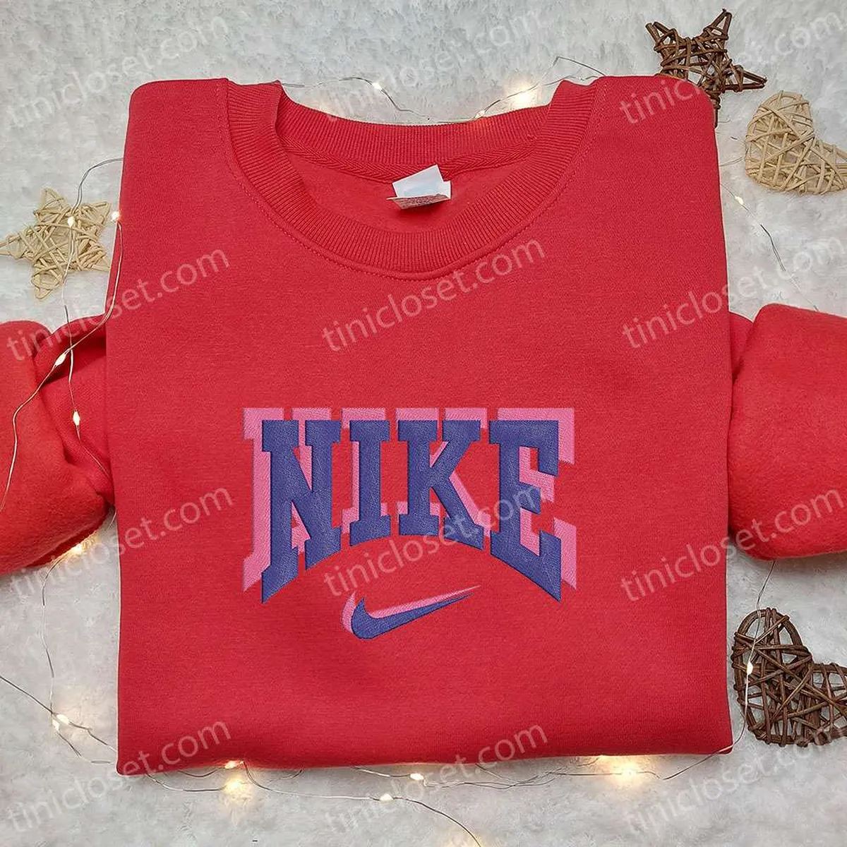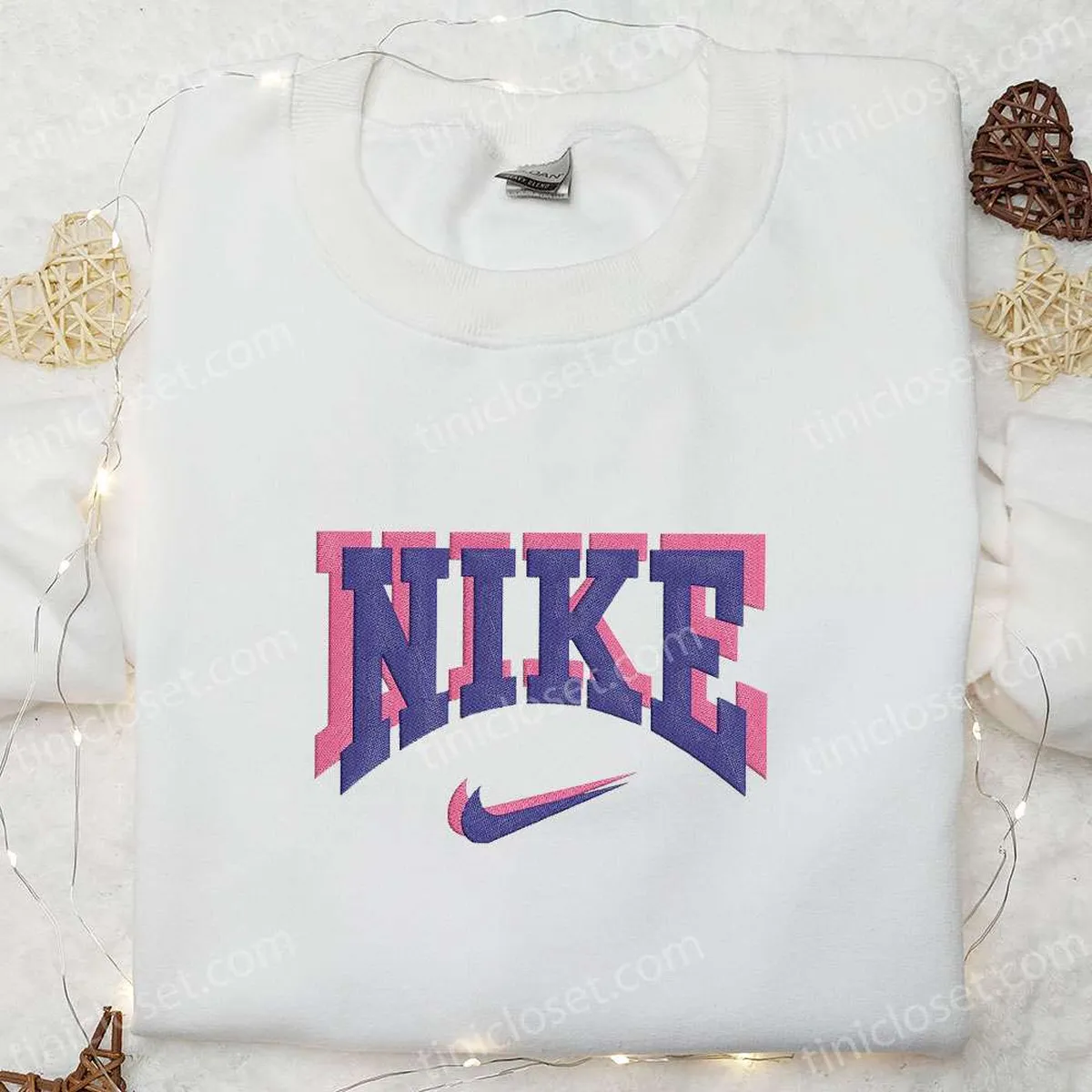 Pink Purple Nike Logo Embroidered Shirt, Nike Inspired Embroidered Hoodie, Best Gifts For Family