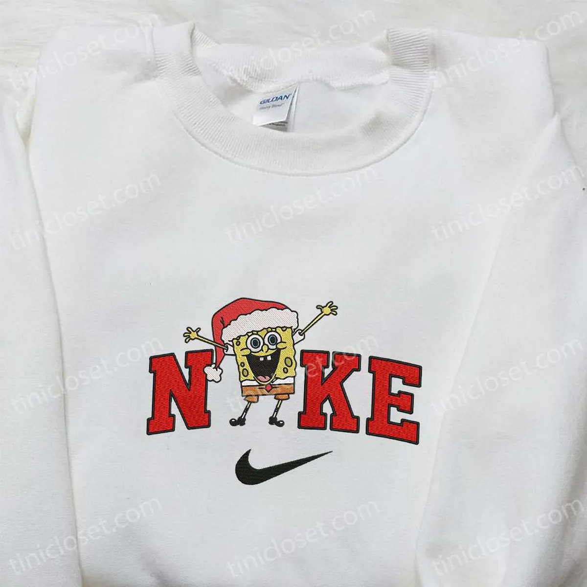 SpongeBob SquarePants Cartoon x Nike Christmas Embroidered Sweatshirt, Christmas Embroidered Shirt, Best Christmas Gift Ideas